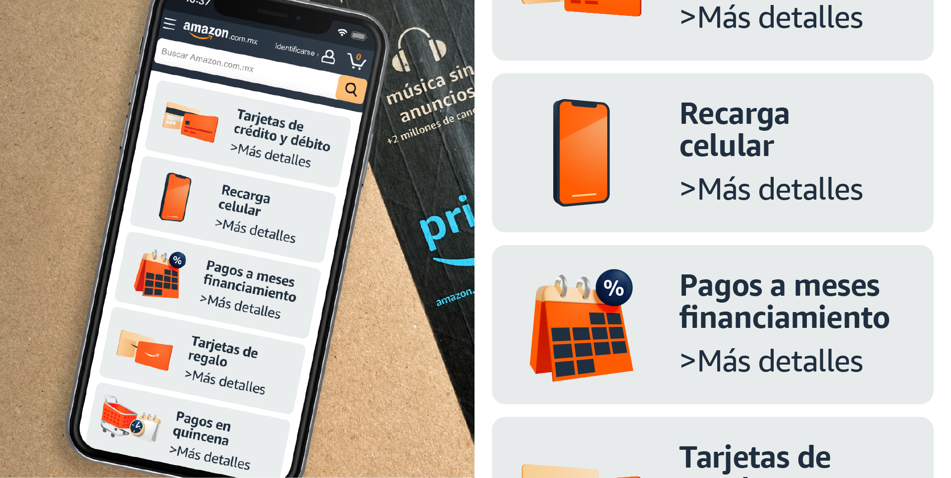 Digital assets made for the Amazon Mexico sales platform, linked to the payment methodologies offered, were adapted to the institutional colors of the brand on white, blue and orange backgrounds for their correct application in digital media
